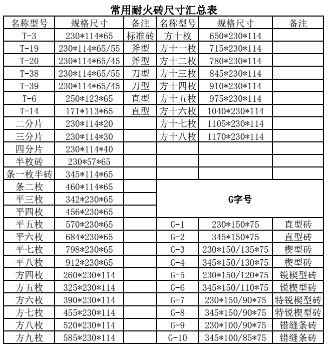 耐火磚的磚型介紹