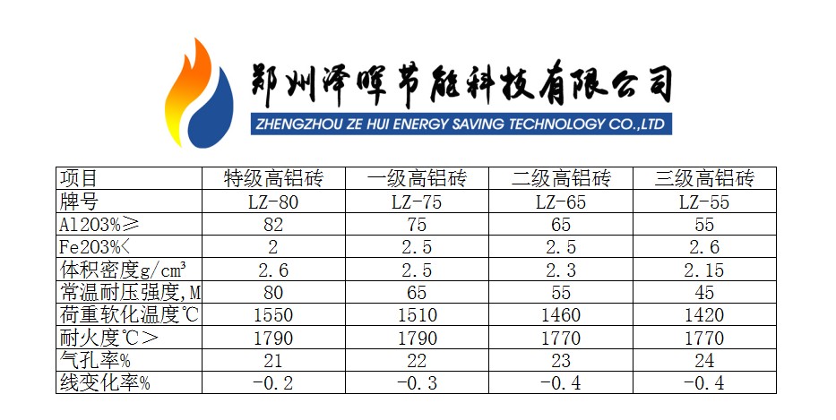 高鋁磚理化指標